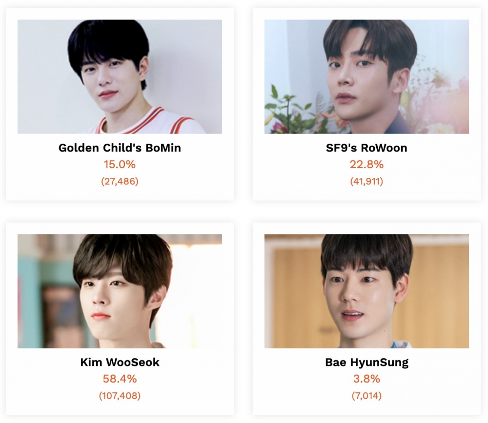 深情男二的人選有崔普閔、金路雲、金宇碩、裴賢聖,目前票數是由金宇碩獲得了超過一半的票數,他曾主演過網劇《TWENTY-TWENTY》,小編也覺得他的氣質真的非常「李律」,不過演技方面還是有點青澀啦~ 至於其他人選,小編私心覺得崔普閔和裴賢聖有點太奶太可愛。路雲的話,感覺好像比較適合演李信?