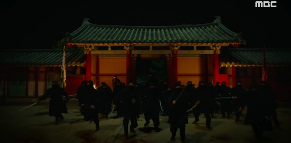 趙尚宮計畫在別宮暗殺李祘,還特意支走了徐尚宮和德任。徐尚宮決定告訴德任廣寒宮地下組織的事,讓德任大為震撼。隨即兩人在途中發現東宮護衛的軍火被丟棄在河中,猜出了廣寒宮的陰謀。來不及趕回去的德任放出風箏傳遞警訊,才讓李祘提前有了準備,然而護衛們因為武器都被破壞,還是陷入了苦戰,好在去搬救兵的洪國榮(姜勛 飾)即時趕到。