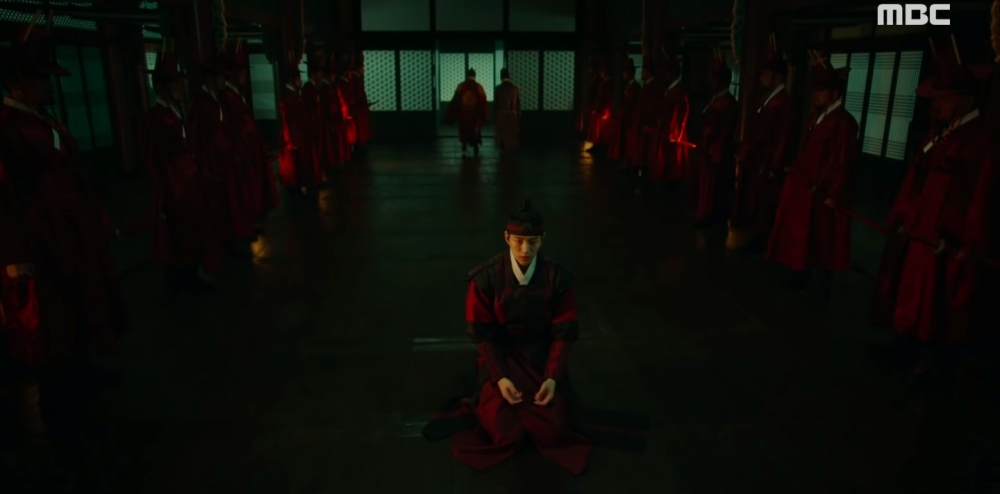 李祘成功逃過暗殺,沒想到趙尚宮太懂皇帝的心思了,故意在李祘動用兵符搬救兵一事上做文章,反倒讓皇帝對李祘產生猜忌,這也讓李祘十分寒心。得知李祘失勢,德任十分擔心,甚至還夢到了李祘。醒來的德任悵然若失,流淚喃喃道:「好想見你...」沒想到李祘真的出現了!德任謊稱流淚是因為打瞌睡,被李祘捏臉頰以示懲罰XD
