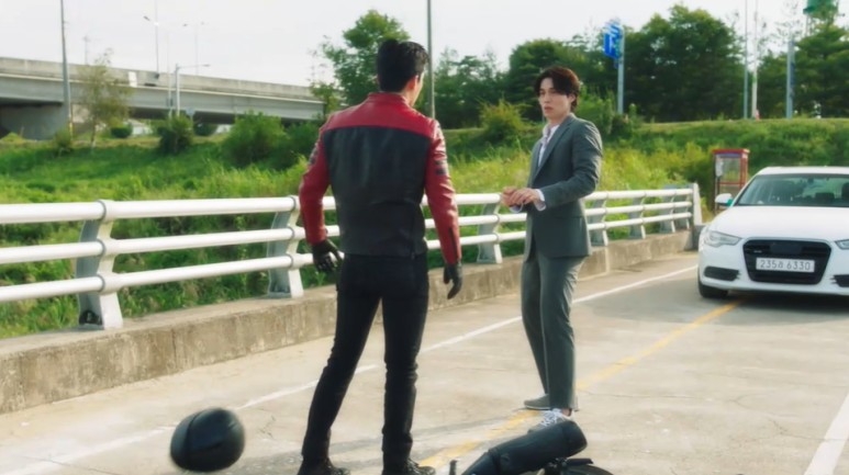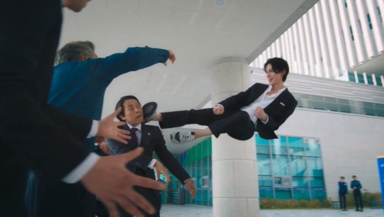 畫面一轉,頭盔男的真實身份曝光,原來他其實是柳秀悅的另一人格,每當柳秀悅縱容犯罪,他就會出現逼柳秀悅走上正軌。所以事實上,踹都議員的人就是柳秀悅本人!看來我們秀悅這次的升職要掰掰了(笑)。小編覺得找魏河俊來演第二人格真的是神來一筆,他與李棟旭的互動真的太爆笑啦~兩人曾說想入選《百想》CP獎(實際上沒有這個獎),我們祝福他們XD