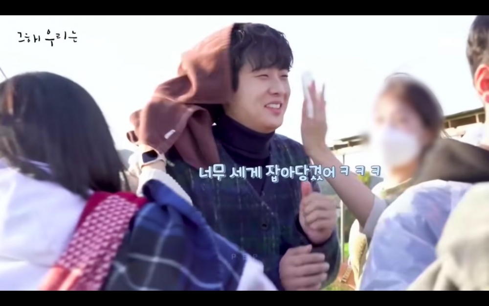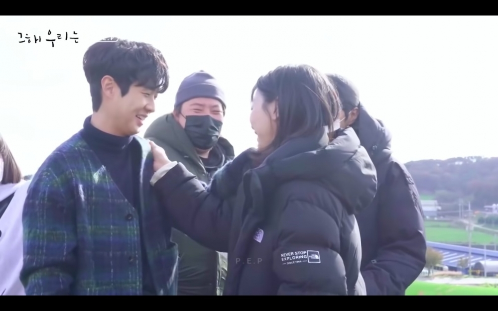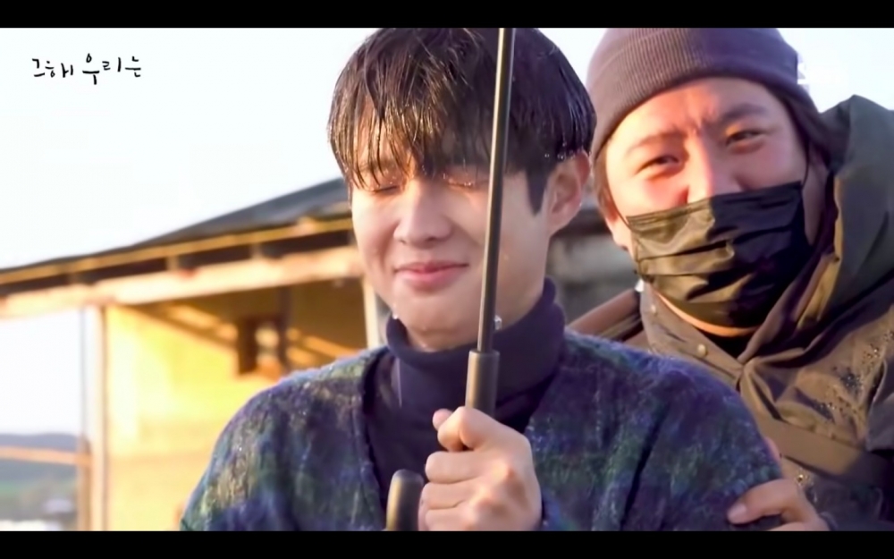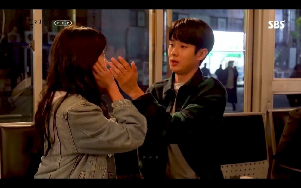 學生時期的吻戲也公開了!原本是延秀摸崔雄額頭看有沒有發燒的劇情,結果雨太大,莫名變成像幫他擦汗XD