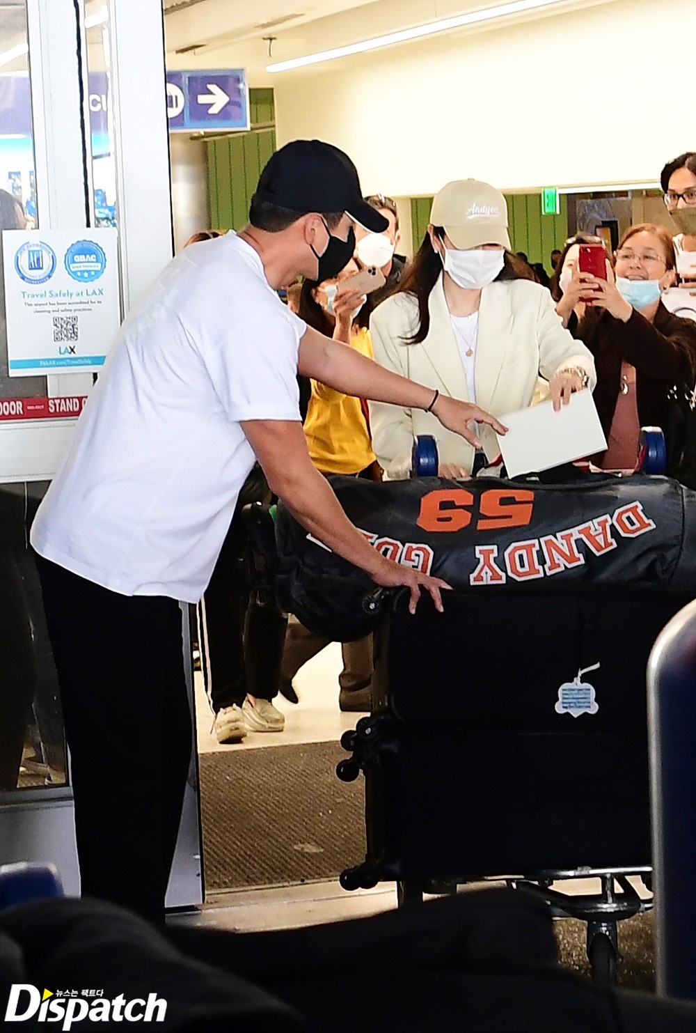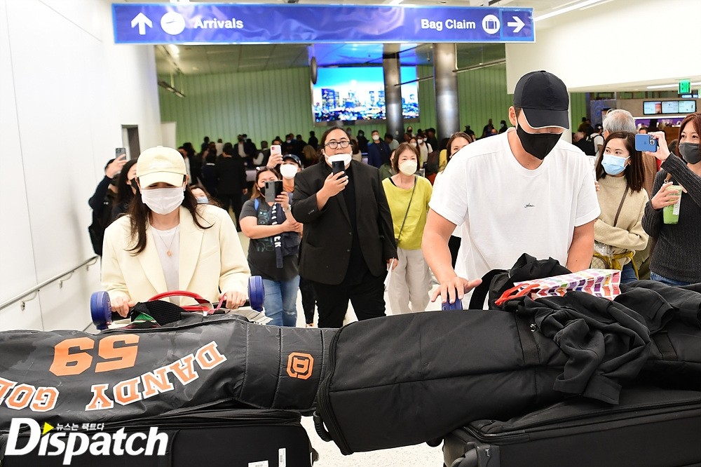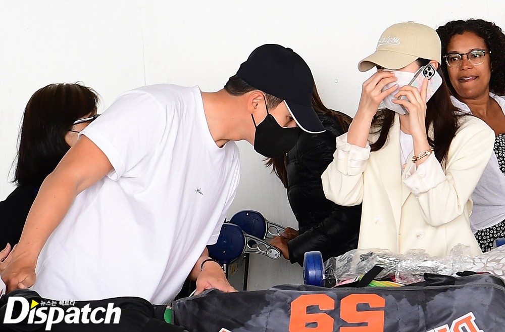 一旁的玄彬也細緻地保護了孫藝珍,發現孫藝真的行李推車卡住之後,他立即過去幫忙移動推車,看到老婆太靠近路邊也馬上把她拉過來(影片2:42),太甜啦~ 據悉,玄彬與孫藝真將在加利福尼亞度過兩週的新婚旅行,並計劃在洛杉磯附近和朋友一起打高爾夫球,從行李中也可以看到兩人都親自從韓國帶來了高爾夫球袋。