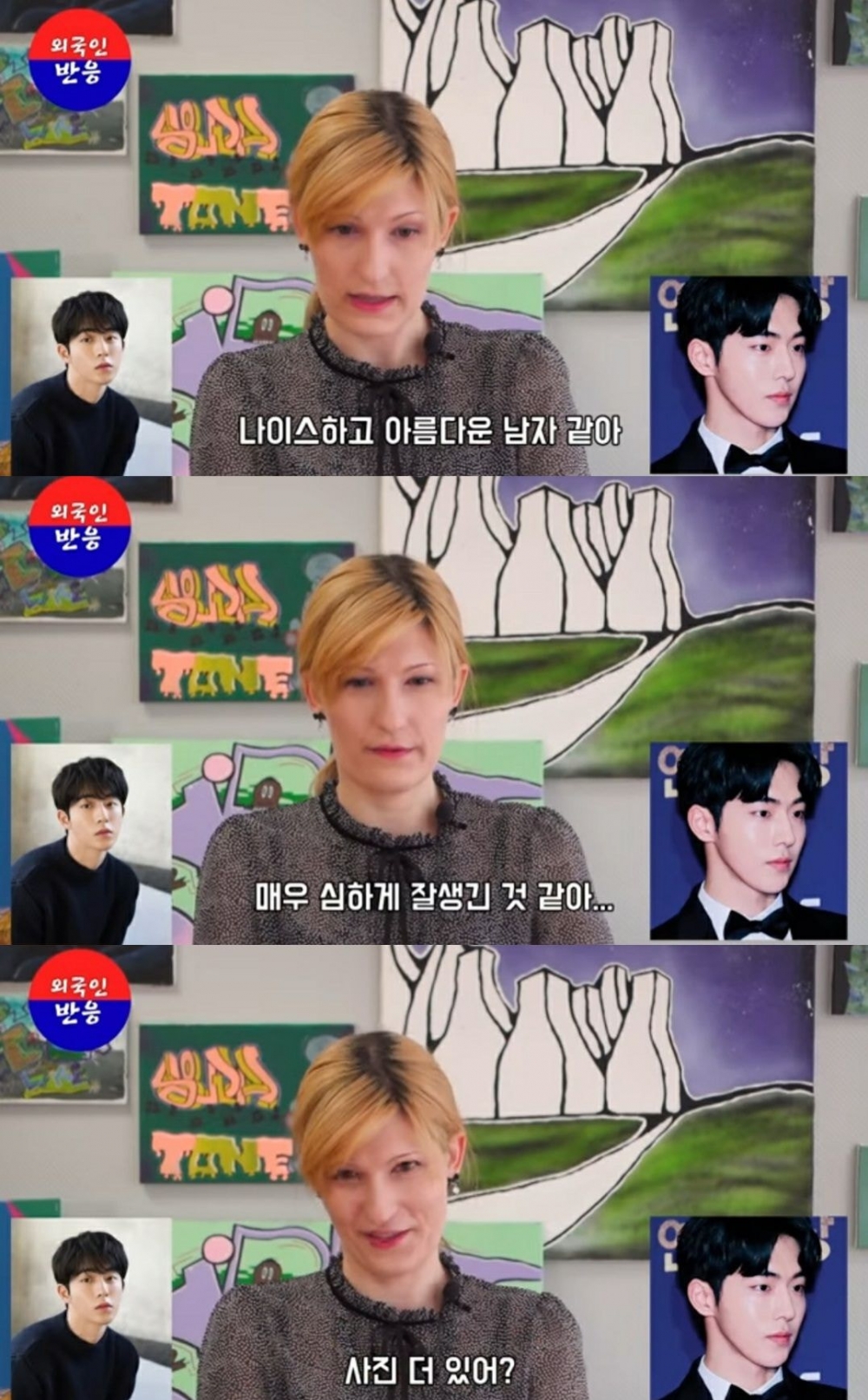 給外國女生們看了南柱赫的照片,她們不禁發出感嘆都稱讚他實在是太帥了,還問說有沒有其他照片可以看!(笑)