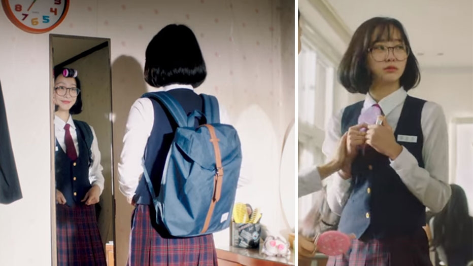 在《二十五二十一》中金泰梨雖然已經31歲但穿上18歲的高中制服完全不尷尬,完美的詮釋90年代的校服造型。夏季短袖襯衫和及膝的裙子是當時標準的穿著。還有金泰梨的眉上齊劉海為整個造型增添了活潑的魅力。