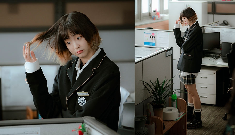 在Disney+原創系列《單戀原聲帶》飾演李恩秀一角的韓韶禧,劇中她穿著端莊的校服展現了清純形象相,在學校誰都無法撼動她校花學生會長的地位,穿著校服搭上看起來沒有化妝的打扮、自然紮起來的髮型完美的呈現了清純美。