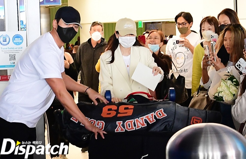 而在經過十幾個小時的飛行時間後,抵達美國的玄彬與孫藝真受到廣大粉絲的包圍歡迎,中間也出現玄彬幫孫藝真推車、看到老婆太靠近路邊也馬上把她拉過來等「護妻舉動」,讓網友們看了直呼好甜。玄彬與孫藝真曾因為在美國時被目擊一起逛超市而傳出緋聞,所以這次前往美國新婚旅行,讓不少粉絲打趣是「重遊定情地」。看兩人行李中都有球袋,擁有相同愛好的他們想必也會在美國繼續「高爾夫球約會」吧~