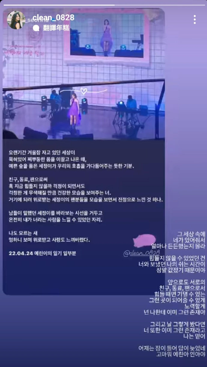 不管戲裡戲外都身為金世正好友的薛仁雅也參加了見面會,並在IG限時動態寫下「作為朋友、同事、粉絲,雖然擔心妳現在會不會累,但妳展現出的健康模樣,讓這些擔心都黯然失色,看著那些因為你得到安慰的粉絲的模樣,我真心感受到了。放下別人口中所說的世正的視線,完全可以感受到妳這個人的位置,我也不知覺的呆呆地看著感受到安慰感受到愛」。