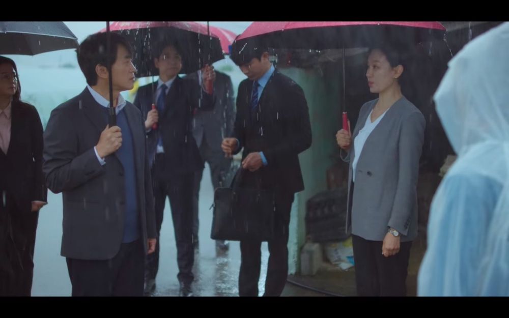 鄭明錫(姜其永 飾)向法官申請現場驗證,原本是想用當地的風土民情打動法官,沒想到當天不但下大雨,太守美(陳慶 飾)更早已搶先以補償金哄騙大多數居民簽下同意書,反將了一軍。太守美撿到了恩禑遺落的包包,兩人在朴樹下聊了起來,太守美還提出要挖角恩禑到泰山!