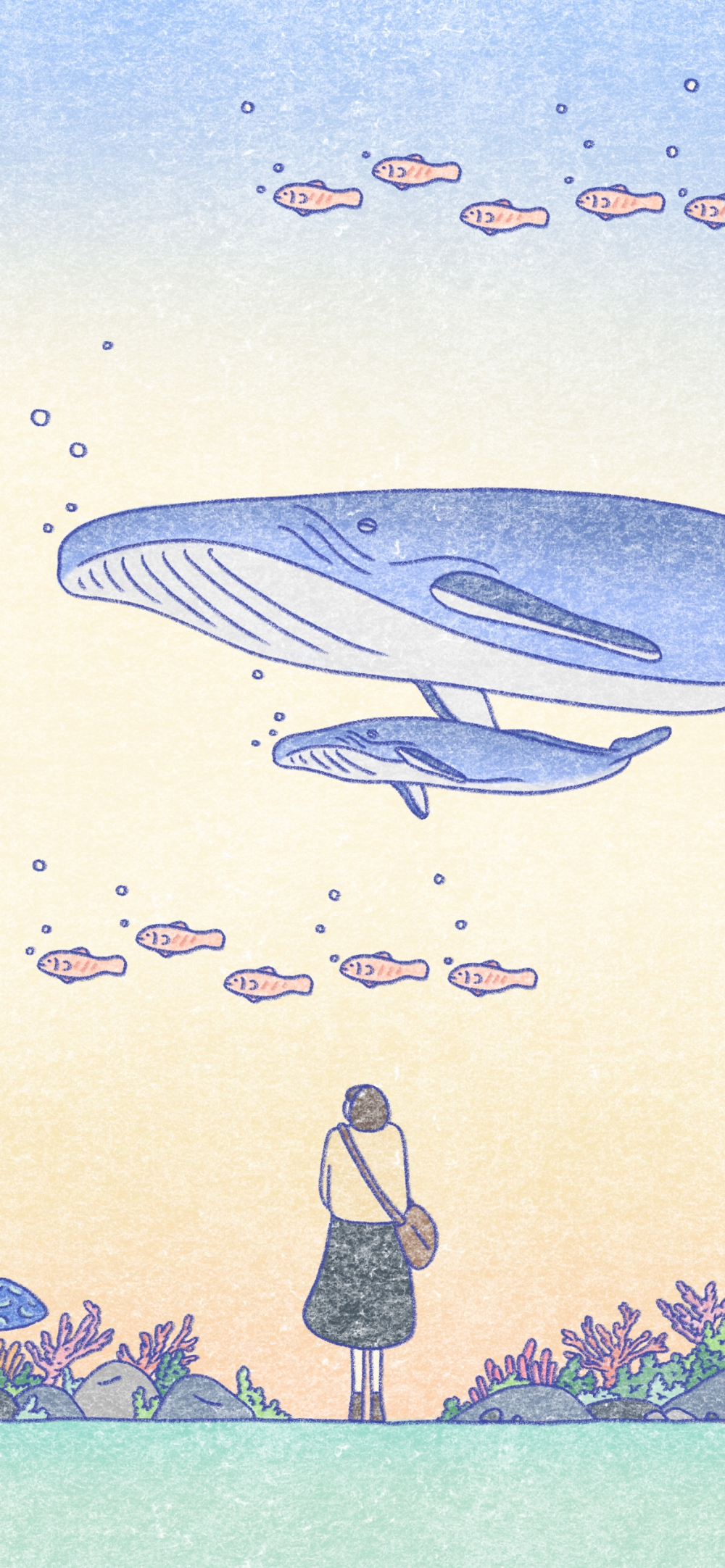 第3集插畫把英禑掏出辭職信的沈重心情用鯨魚沈入深海的意象表現了出來,而第4集插畫則把英禑看到鯨魚照片的激動的心情比喻成海浪,就像親眼看到鯨魚一樣,想營造出充滿活力的感覺。