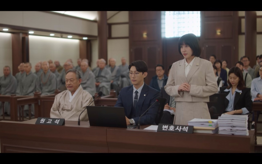 禹英禑(朴恩斌 飾)接到房東太太的父親委託,要狀告濟州島的黃地寺強制向路人收取參觀費。被診斷出胃癌第三期的鄭明錫(姜其永 飾)放飛自我,他帶領汪洋律師們前往濟州島出差,一身渡假風造型讓大家都看呆了。鄭明錫心心念念當地麵館「幸福湯麵」做的豬肉湯麵,他曾在度蜜月時來吃過,沒想到卻得知該店已經歇業,讓他非常失望。