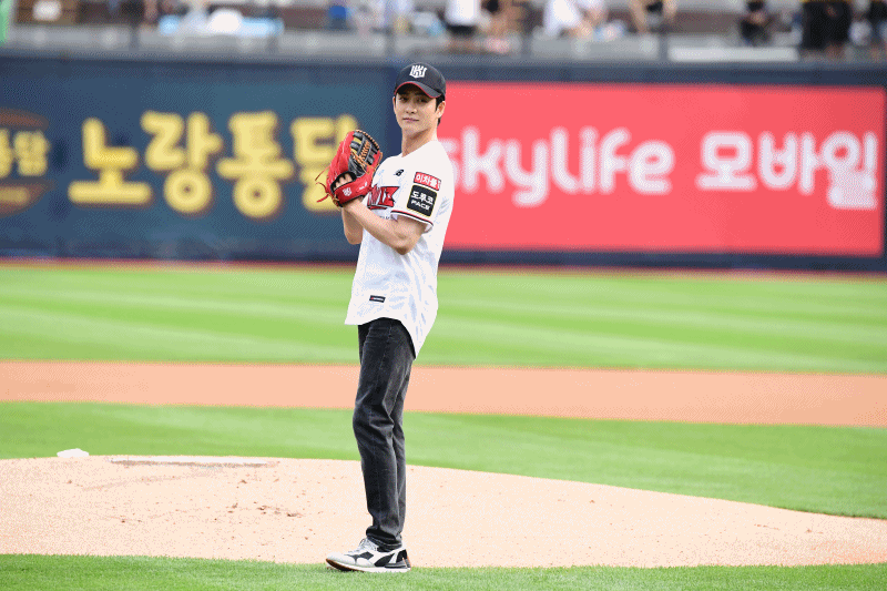 姜泰伍7日現身水原KT Wiz Park,受邀在KT Wiz和韓華老鷹隊的比賽之前開球,他身穿KT隊服來到棒球場,馬上受到現場觀眾的熱烈歡迎,還與「鯨魚」一起出場,真的太可愛啦~
