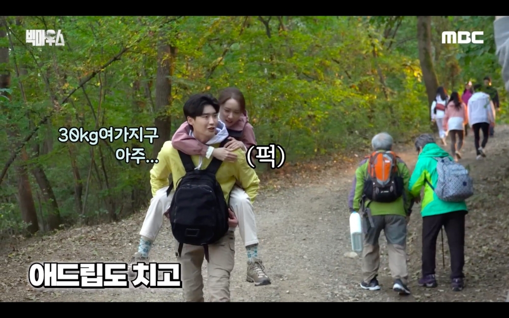在拍攝薇瑚腳受傷朴昌浩背她下山的場面時,導演稱讚兩人之間的氛圍很好,但李鍾碩卻忘記說台詞,讓兩人只好重新上山再拍一次,這次下山時李鍾碩又開始即興演出:「我們家薇瑚只有30Kg...」下山後還被潤娥質問:「是不是有點喘得太厲害了?」李鍾碩連忙解釋:「沒有沒有!」但他因為太慌張連話都說不好,製作組還上字幕替李鍾碩解釋:「是因為海拔太高所以造成呼吸急促啦...」最後終於拍攝完成時,李鍾碩還故意捉弄潤娥做出腿軟的動作。