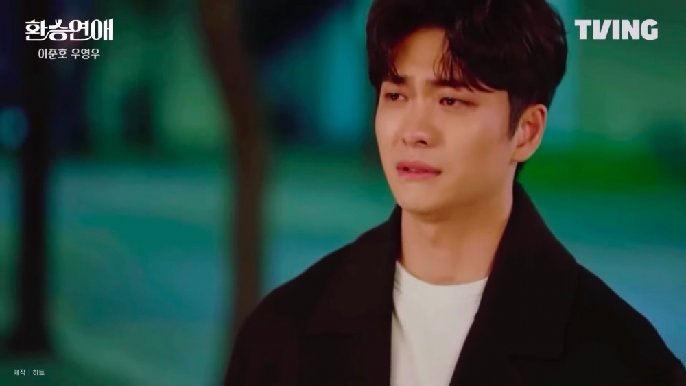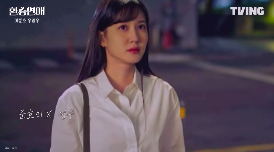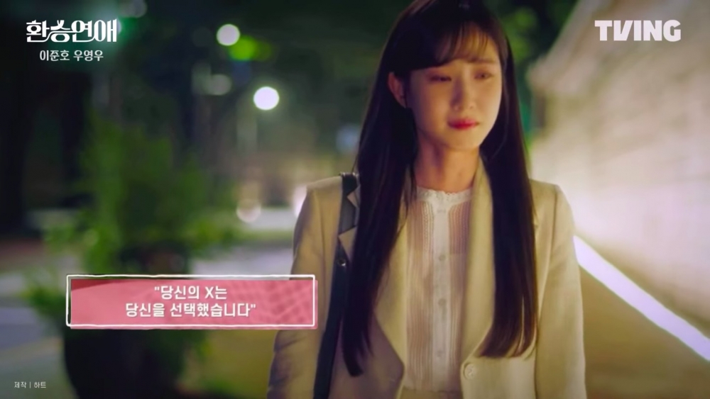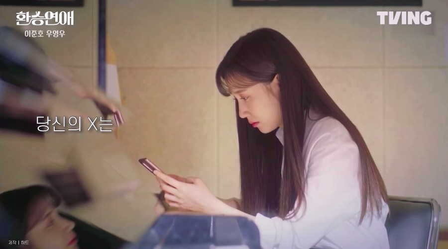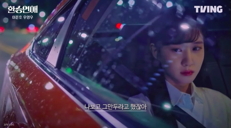 一開始就是經典的「你的X沒有選擇你」,英禑與濬浩看著手機,臉色都不是很好看,這時BGM響起,整個氛圍拉滿!濬浩的X(前任)英禑登場,坐在計程車上的她眼眶含淚,語氣有些埋怨:「不是你對我提出要到此為止的嗎?」