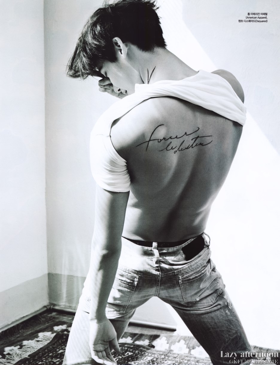 李鍾碩在2014年曾經為韓國時尚雜誌Ceci拍攝畫報,從前以純真美少年模樣俘獲女性芳心的他,這次卻在這組以「Homme Fatal」為概念的破格畫報,首次公開了至今為止一直隱藏的完美腹肌和身材,展示了何謂「真男人」的魅力,而且為了此次拍攝男神還特意去畫了紋身啊~
