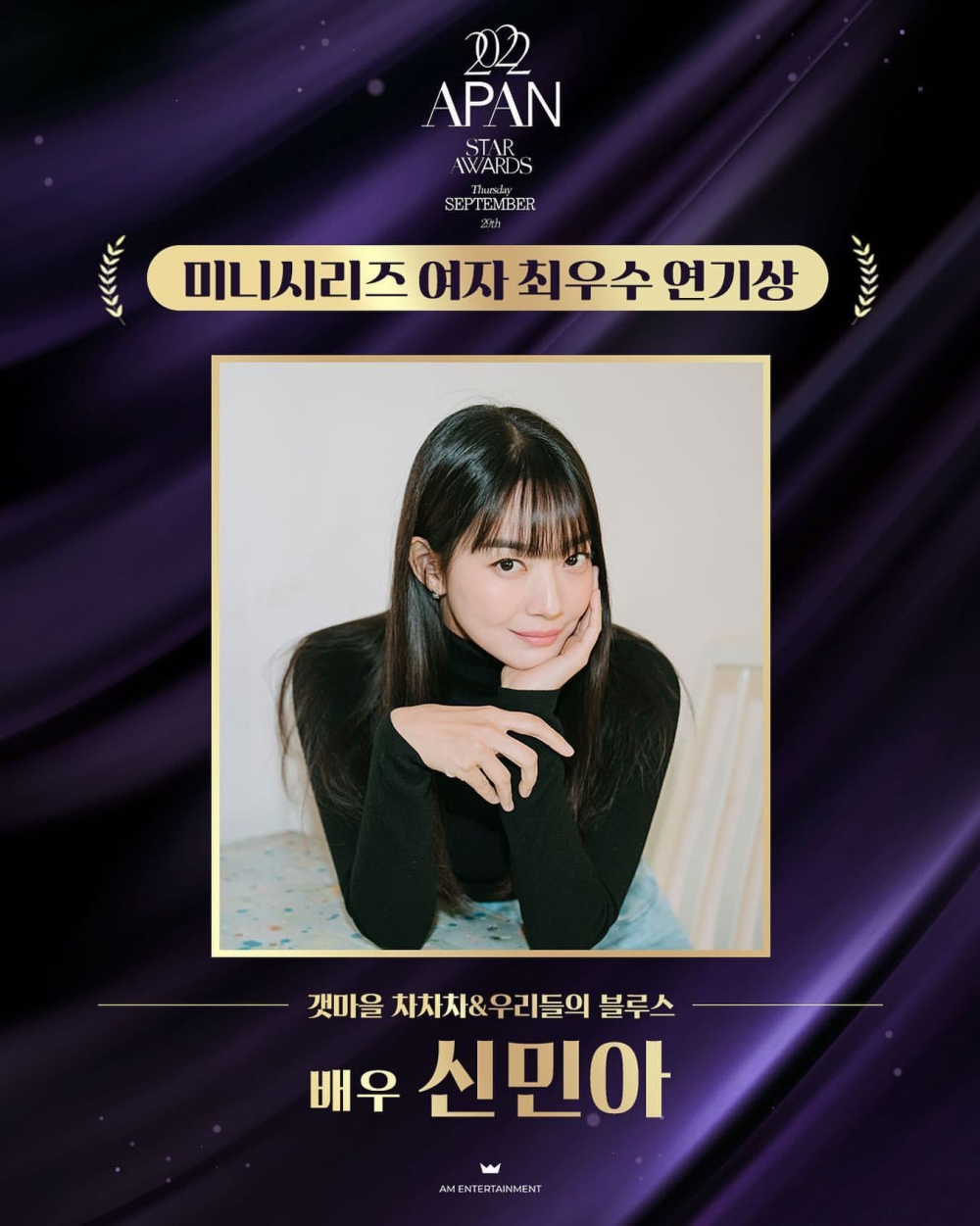 迷你劇集女子最優秀演技獎:申敏兒《海岸村恰恰恰》、《我們的藍調時光》