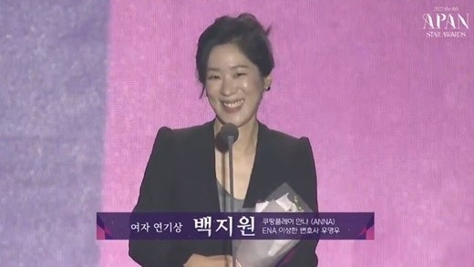 女子演技獎:金信祿《地獄公使》、白智媛《非常律師禹英禑》