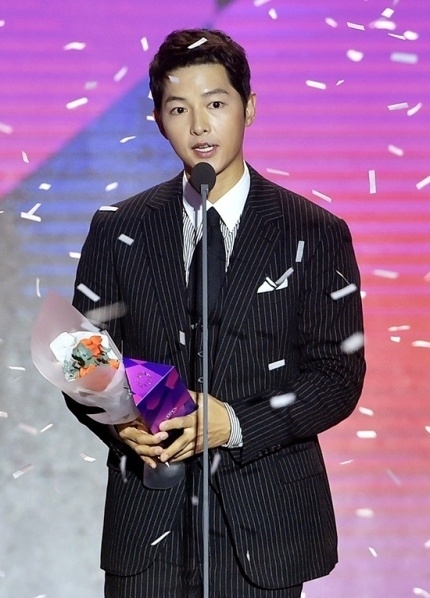 「原本以為我不會很緊張的但我很緊張,很開心能和從我新人時期就一起同甘共苦的李俊昊一起獲得大賞,對我而言更加開心!在我任性地討厭片場時遇到的作品正是《黑道律師文森佐》,開拍那天我甚至緊張到反覆問自己“我為什麼要去做?”,這是部讓我不想有明顯主角感的作品,但感受到工作人員、同事演員們那麼看著我,我才能成為真正的成為文森佐。」