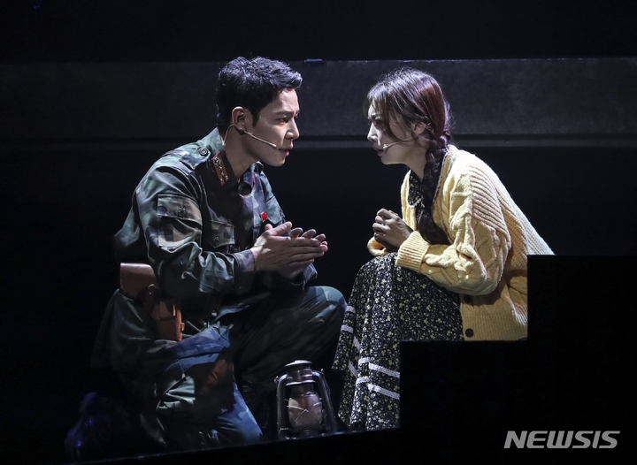 音樂劇《愛的迫降》改編自tvN電視劇歷代收視率第一的電視劇《愛的迫降》,劇情講述某一天因滑翔傘事故迫降朝鮮的財閥繼承女尹世理和隱藏並守護她的特級軍官李正赫的愛情故事。該劇演員陣容除了音樂劇演員們外,李奎炯、李章宇飾演男主角「利正赫」,李伊庚飾演男二「具承俊」。