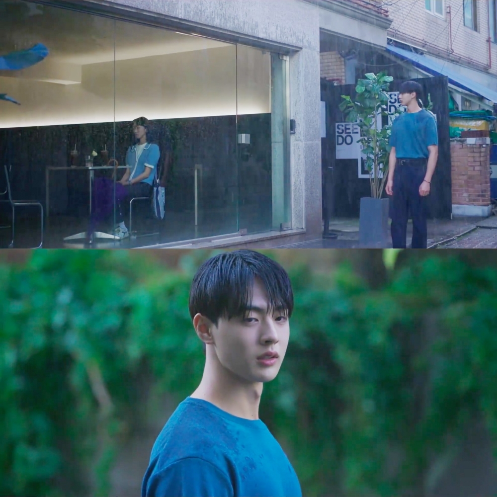 結尾,海伊拒絕了善浩,善浩落寞地走入雨中,回頭看著海伊的背影好一會才離開... 之後海伊來到正宇面前,讓正宇抱抱自己,兩人在傘下甜蜜親吻,這場糾結許久的三角關係終於了結。