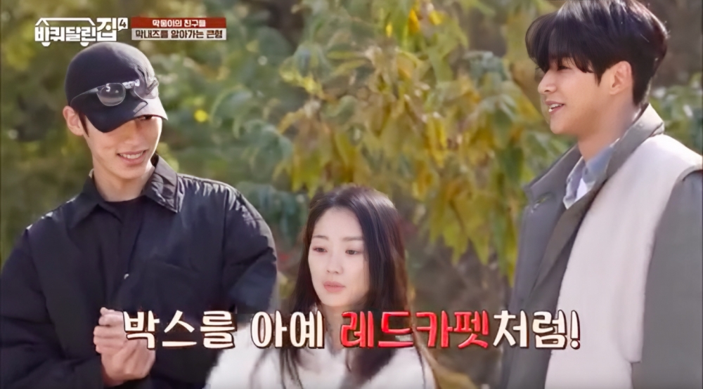 之後成東鎰便好奇當時在拍攝時怎麼一次讓三個人入鏡,李宰旭解釋:「所以惠允總是在下面墊上箱子」,金惠允還逗趣的說:「箱子就像是紅毯一樣的鋪著」讓現場笑成一片。