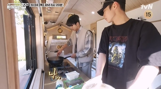 平常在節目中總是擔任助手的路雲,這次化身主廚為好友親自料理,不過卻被李宰旭吐槽:「看你這樣拿著夾子站在平底鍋前真的很奇怪」路雲反擊他:「我也是會做的!我其實不差」。