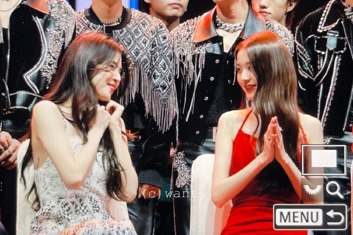 今年再次獲得最佳藝人獎的韓韶禧,紅毯造型依舊驚艷全場,站上領獎台還沒打招呼台下粉絲就尖叫聲不斷,她在台下的模樣也被粉絲捕捉到,其中一張韓韶禧坐在IVE張員瑛旁邊臉上充滿小迷妹的表情超可愛,另一張則是她獨自一人仰天大笑,和身旁冷靜的男明星完全形成對比(好想知道女神在笑什麼XD)。