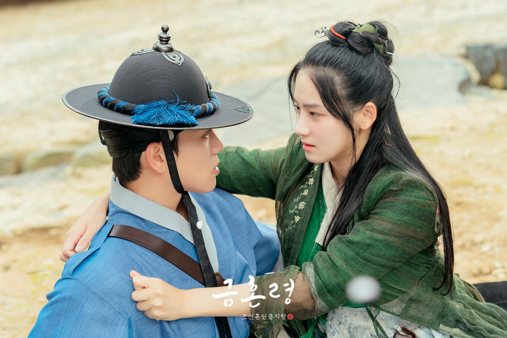 由金永大、朴柱炫和金宇錫主演的古裝漫改劇《禁婚令-朝鮮婚姻禁止令》,官方日前(12/16)發佈了第三集搶先看的内容及劇照,李憲(金永大 飾)和素娘(朴柱炫 飾)兩人居然迎來了「初吻」!曾經與素娘有過婚約的李新源(金宇錫 飾)至今還在尋找當年的「妻子」,這三人之間出現了微妙的氣氛...