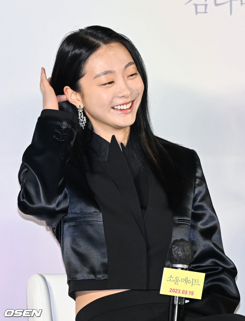 由金多美、全少妮、邊佑錫主演的電影《靈魂伴侶(Soulmate)》定檔3月15日在韓國上映,今日(2/3)劇組舉行製作發佈會,3位主演「情侶裝」出席,不過金多美卻被媒體拍到多次擠出「雙下巴」,讓網友驚訝表示:多美腫麼了~