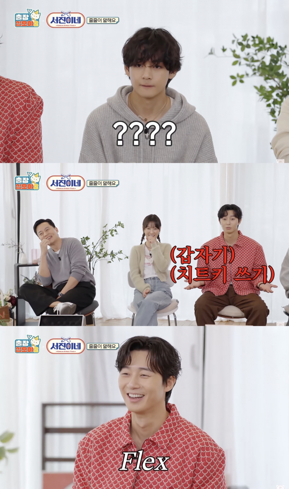 之後遊戲環節真的全程爆笑,玩詞語接龍時成員們常常卡住,泰亨還多次脫口喊出不存在的奇怪詞語,朴敘俊更直接搬出媽媽牌耍賴:「我媽媽就是這麼說的,你是在無視我媽媽在用的詞嗎?」之後大家屢戰屢錯,朴敘俊努力維持平常心,故作輕鬆地Flex表示:「沒關係的,我賺的錢還是買得起這些的~」