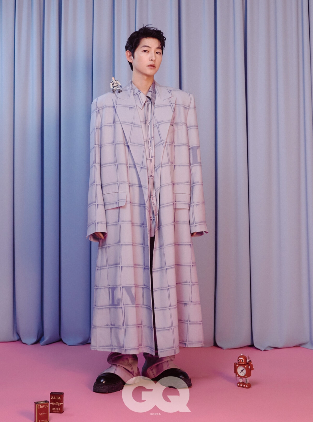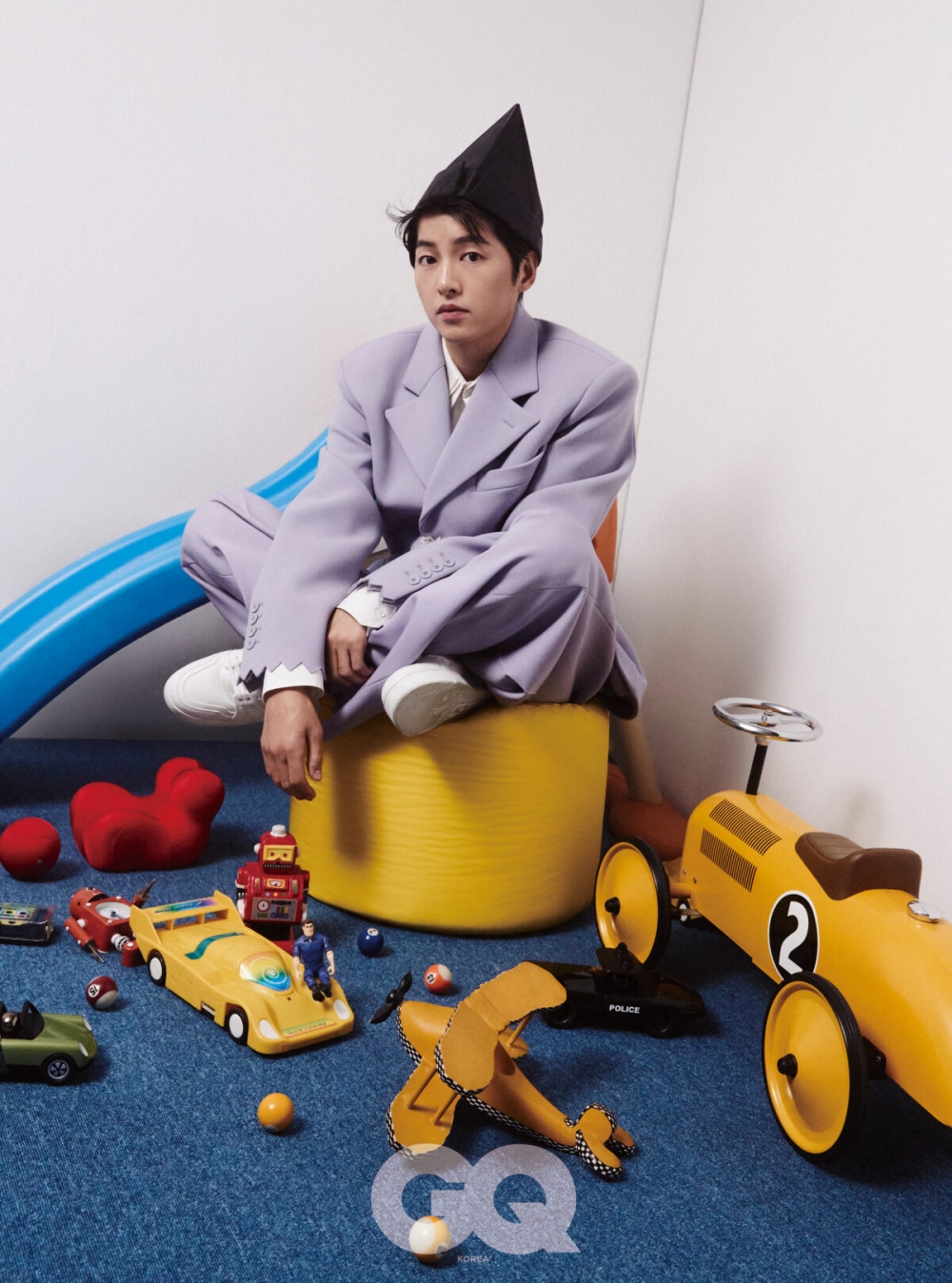 另外,雜志主題以《某一天,從宋仲基安穩時間開始》命名為雜志封面故事為首,開啓新一期專題。又要兼顧事業同時也是爸爸的他來説時間變得更加寶貴,當被問到今年春天有什麽是特別想去嘗試的東西時,他回答:「這是我成為奶爸之前的最後一個春天,所以我真的很想多和我的妻子出去約會。」隨著主題,現場多了很多玩具作為拍攝道具,工作人員接著問宋仲基:「今天拍了很多玩具對吧?連長頸鹿都出現了(笑)這些東西過段時間就不會被當道具了吧?」他回應到:「對吧?他們也是這麽説的(笑)」