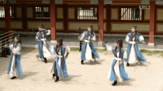 最後就是知名的《花郎》群舞動圖了,前排偶像出身的朴炯植、崔珉豪、V是整齊劃一的刀群舞,而後排演員都枝寒、趙潤宇、朴敘俊直接撞成一團,舞蹈實力也是偶像與演員的差異啊xD