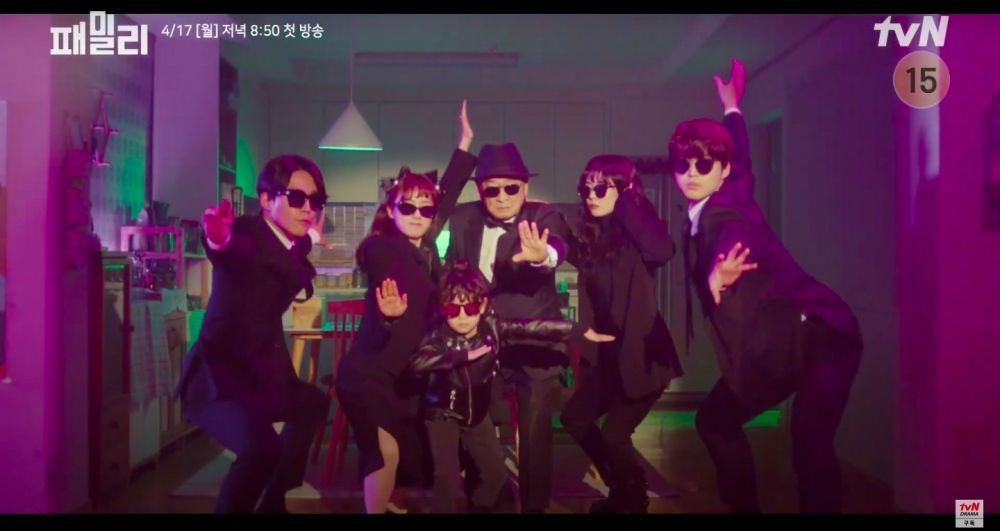 與此同時,權志勳(金江珉 飾)、李美林(尹相貞 飾)、權敏書(申秀雅 飾)等權氏一家穿著米色dress code服裝和樂融融的拍下有如全家福的團體照,看著他們燦爛的笑容讓人不禁跟著露出微笑。瞬間室內變暗,大家換上全黑西裝戴上墨鏡,變身諜報家族展現了與上一秒不同的180度反轉形象,他們收起笑容,擺出像在執行任務般的姿勢向前走(笑)~