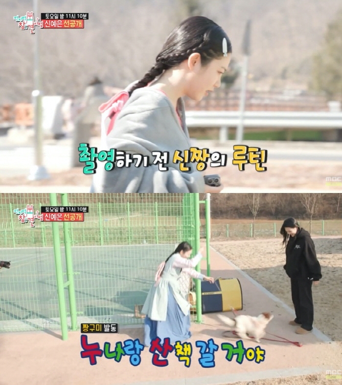 另外,綜藝《全知干預視角》也搶先公開長達3分鐘辛叡恩的預告,時隔許久出演綜藝的她再次為大家帶來歡笑。拍攝電視劇的空擋,辛叡恩邊叫著狗狗奇東的名字邊和牠對話,在現場和奇東玩耍是她的必備行程,才剛說著要帶奇東去散步的她馬上被狗狗牽著跑,讓一旁的經紀人爆笑:「哇~是狗在遛叡恩呢」XD