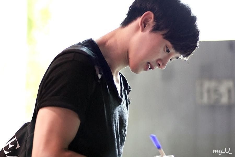 而且看得出來朴成勳是有點肌肉的,看看那個粗壯的手臂肌... 這是在簽名還是在捶打粉絲們的心啊~(誤)