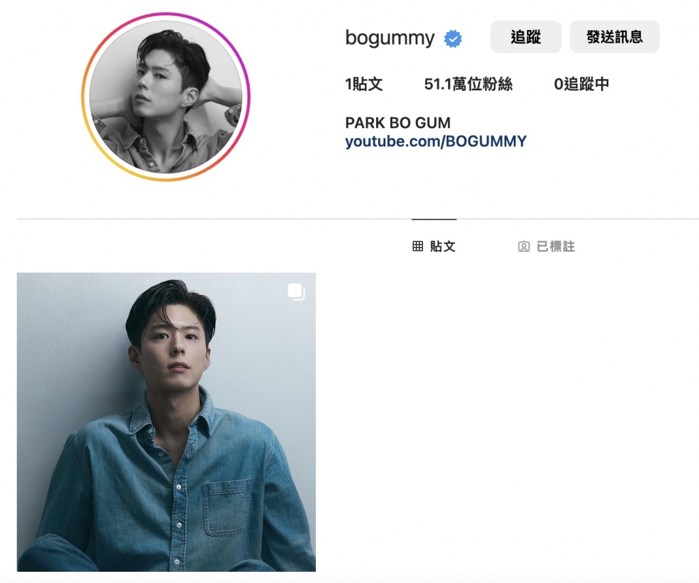 朴寶劍的IG僅公開幾小時就已經吸引了50多萬粉絲追蹤,男神也上傳了一組自己的公式照作為第一則貼文,兩個多小時就收到了25萬多個讚,魅力相當驚人呢~