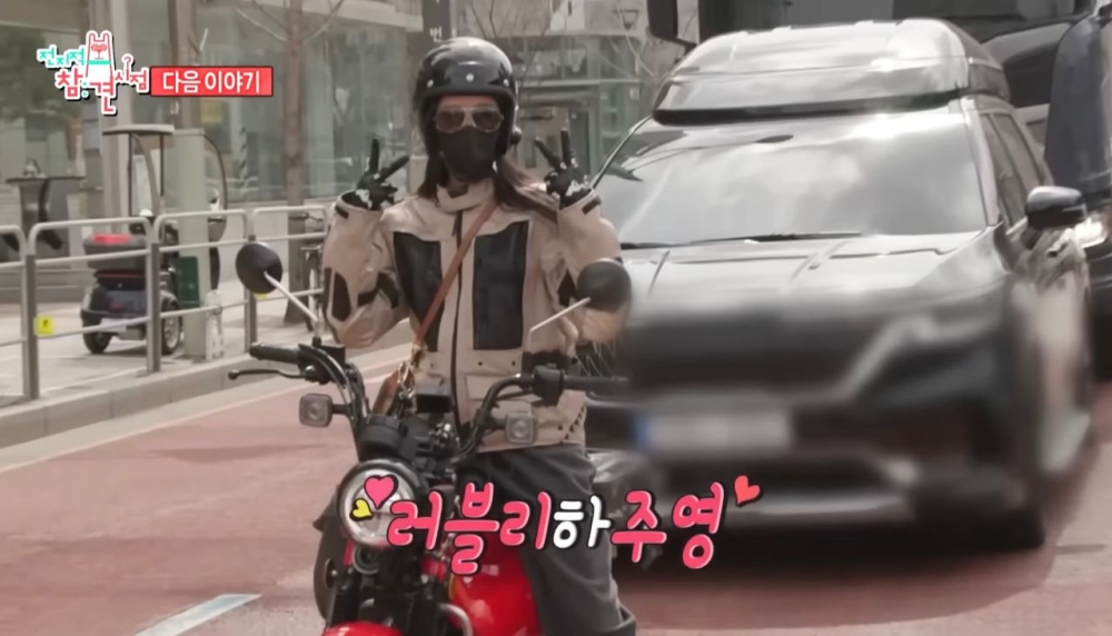 私下非常好動的車珠英平時除了會健身、游泳、瑜伽、擊劍以外居然還酷愛騎車!穿著皮衣、騎著小型重機的她在享受速度的同時,還不忘和攝像機打招呼(看來歐尼已經適應綜藝模式了XD)這也讓網友紛紛表示:「原來我們知性美女也有那麽帥的一面啊!!」、「不僅是學霸還是運動天才,還有什麽是姐姐不會的嗎?」