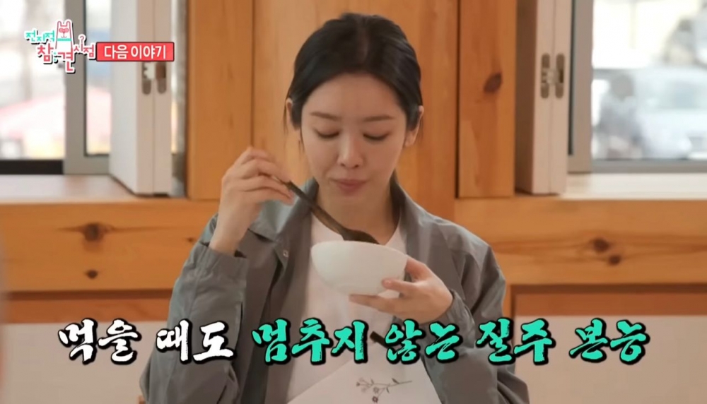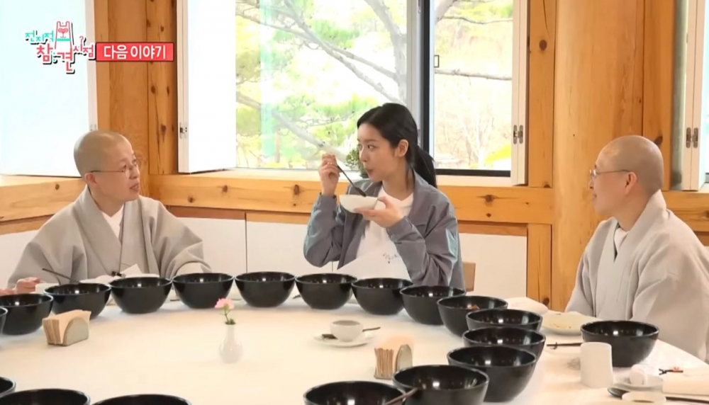 上一秒興奮奔馳在高速公路的車珠英,下一秒便換上了運動服到寺裏吃飯。原以為她會慢慢的享受(畢竟是在寺廟裏)結果我們歐尼乾飯的速度就和她騎車的速度一樣快!!在她與僧人的對比之下,截然不同的畫風實在是太搞笑了kkk (話説這是惠程未來婆婆常駐的寺廟嗎(誤)