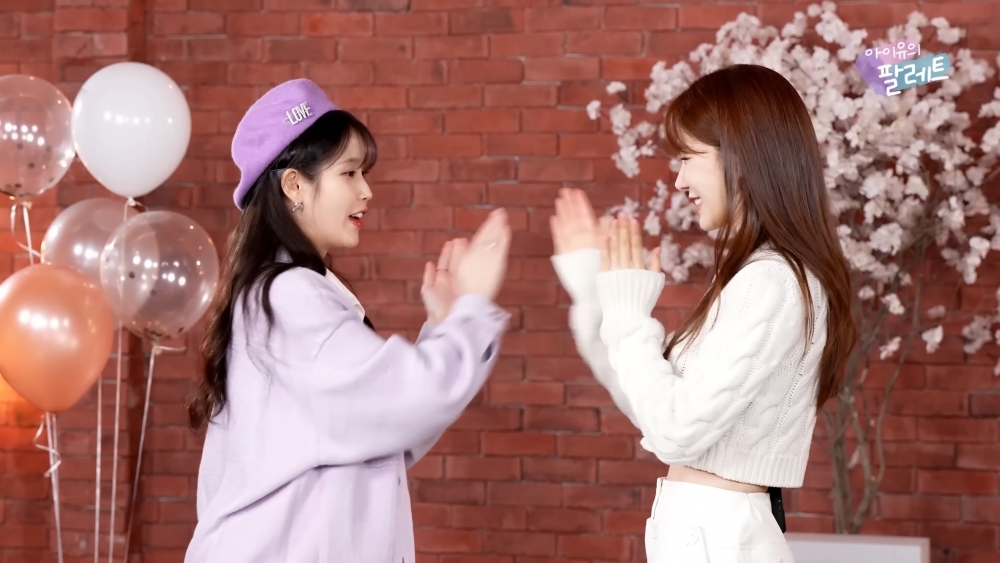 Photo from  이지금 [IU Official]節目中,IU和仁娜為了證明她們是真友誼便玩起了「數數擊掌」游戲。在游戲還未開始前,IU用著最溫柔的語氣對著仁娜說了最恨的話:「如果我們失敗了,就不能一起玩了」隨著越拍越用力、勝負慾極强的IU,將定在中間的擊掌點慢慢移到了仁娜的胸前。辛虧仁娜歐尼比IU長得高一點,感覺IU一不小心就會給她臉上留下蓋章了XD 最終通過測試的兩人還默默說:「我們可以一起玩了(筋疲力盡)」怎麽那麽可愛~~