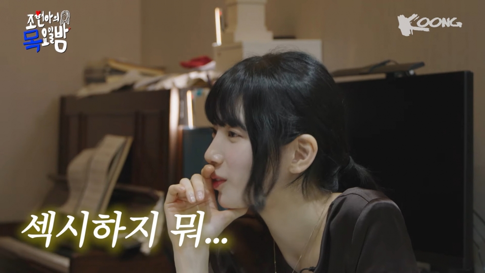 節目中,秀智分享了遇到心儀對象調情的方法,她表示必須保持微笑,而且是露出牙齦的那種(額...為什麽看起來有點像阿呆啊XD)但事實上秀智說如果遇到心儀對象,她會比較安靜、會裝著不經意的樣子,而在成功被帶跑偏的趙賢雅則一旁邊聼秀智分享邊練習「牙齦微笑」引發現場一片笑聲。