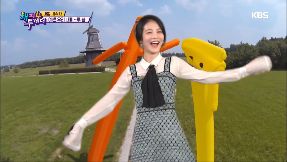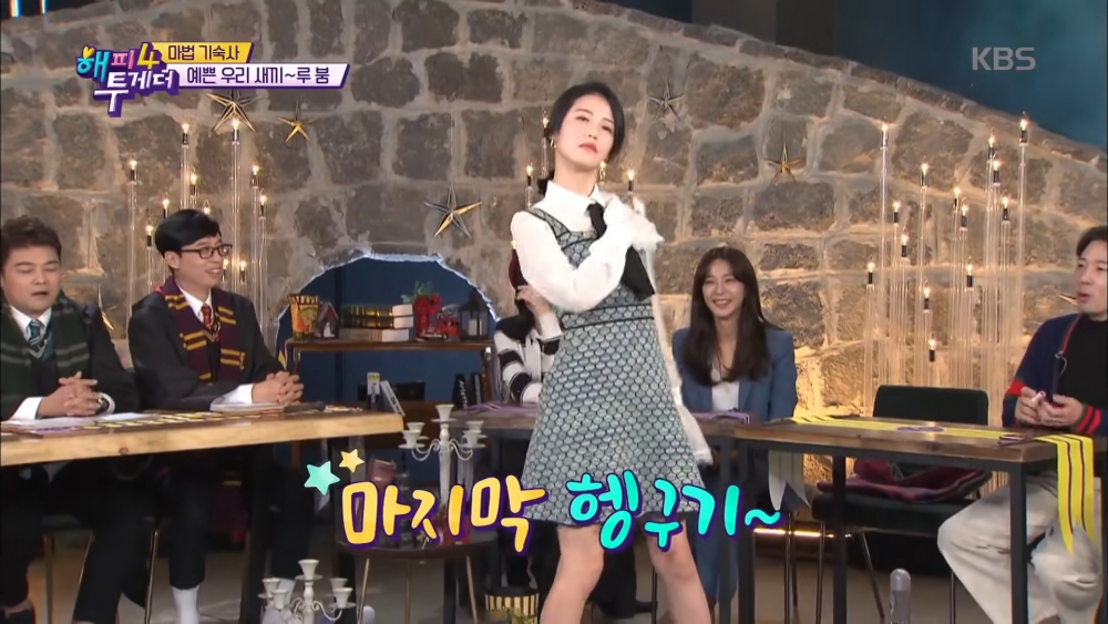 之前曾因綜藝感太强被經紀公司禁止上節目的辛叡恩日前與姜勳一起到訪《Running Man》宣傳正熱播中的古偶劇《花書生熱愛史》。為了一雪前恥,辛叡恩又再次準備跳舞給大家看,跳的還是近期在南韓最火紅的<HYPE BOY>、<OMG>、<FIGHTING>這次真的很想把舞蹈跳好的她緊張的心臟不停亂跳還讓全昭旻確認心跳XD嗯...怎麽說呢wuli叡恩把舞蹈動作都做對了但卻還是感覺怪怪的kkk