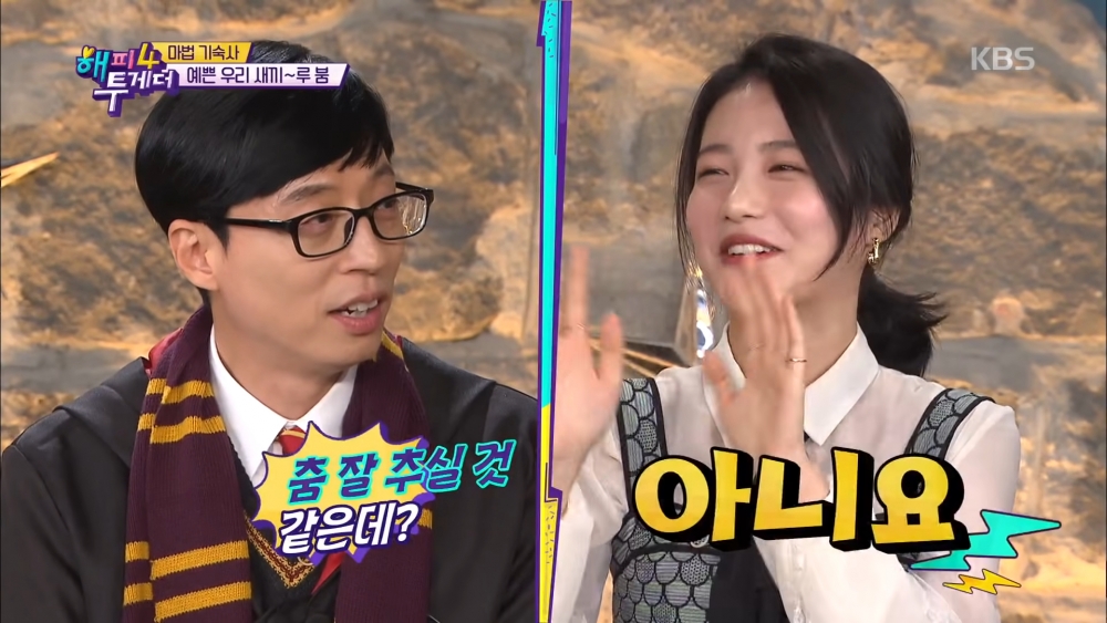 其實早在2018年的《Happy Together》劉在錫就見證過辛叡恩的舞蹈實力XD當時的她也才剛出道不久,被問到如何進入到JYP公司時,辛叡恩表示大學就讀的是演技藝術系,在學期間因「臉讚」出名後,受邀拍攝雜誌封面然後被JYP相中,並在通過選秀後成為演員練習生。看到各方面(跳舞除外XD)都符合愛豆條件的劉在錫問辛叡恩說為什麽不以愛豆出道時,辛叡恩心虛的回答說:「很多人都這樣說,但我不會唱歌也不會跳舞(笑)」