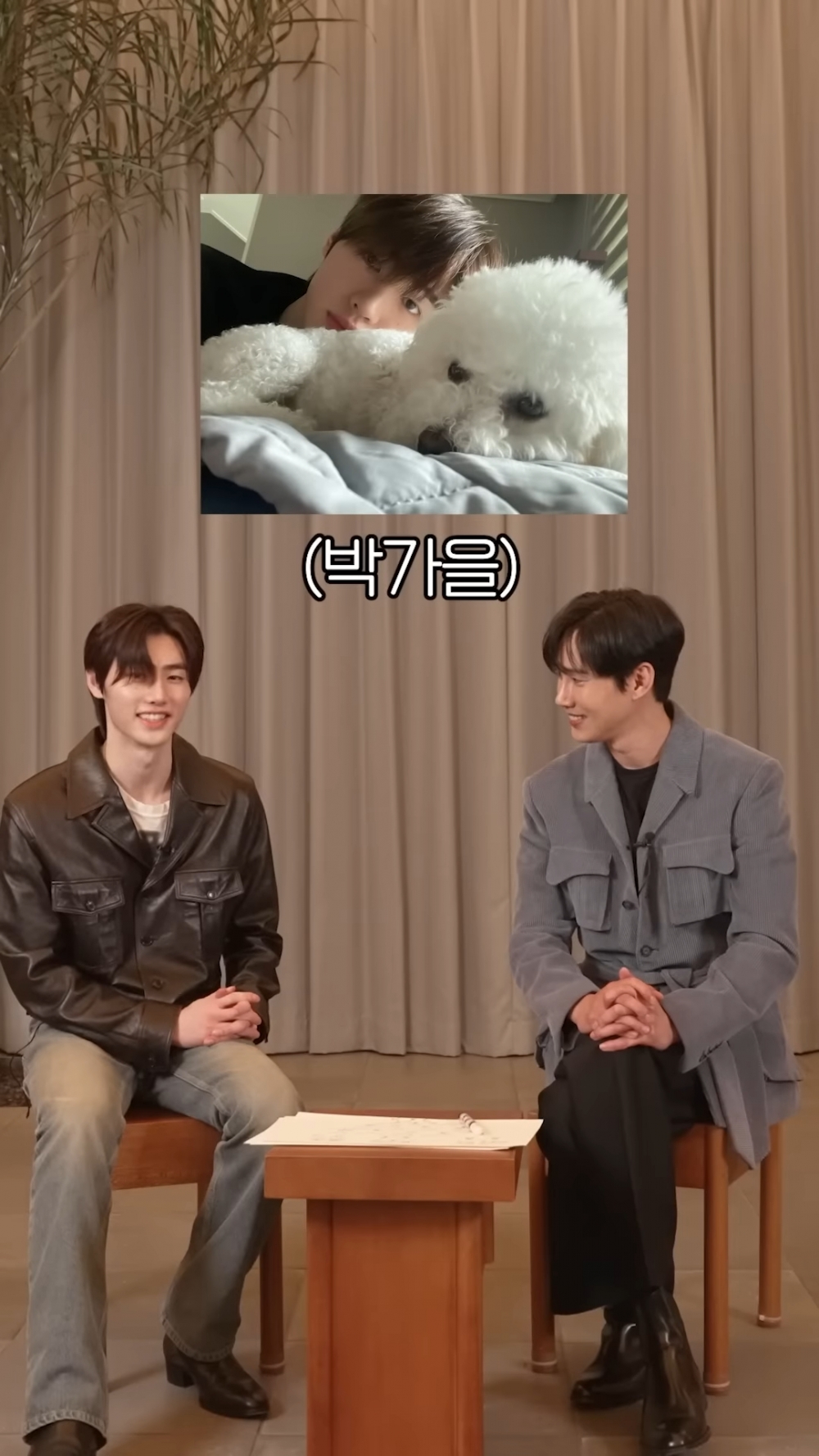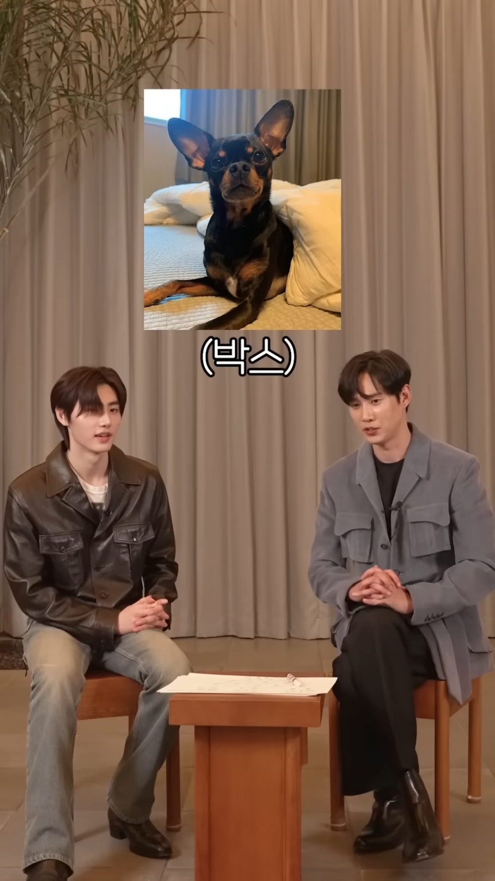 另外,工作人員還為同名同姓的兩位安(硬)排(凑)了幾個共同點(誤)碰巧的是兩位都有養狗狗,但朴成勳養的是迷你杜賓叫「Box」、而ENHYPEN朴成訓養的是比熊犬叫「秋天」(嗯?!這也和李到晛家的狗狗聯動了XD)朴成勳接著分享說他家的狗狗聽不懂「砰」的指令,朴成訓也回應說:「哦!我家狗狗也不會」共同點加一XD