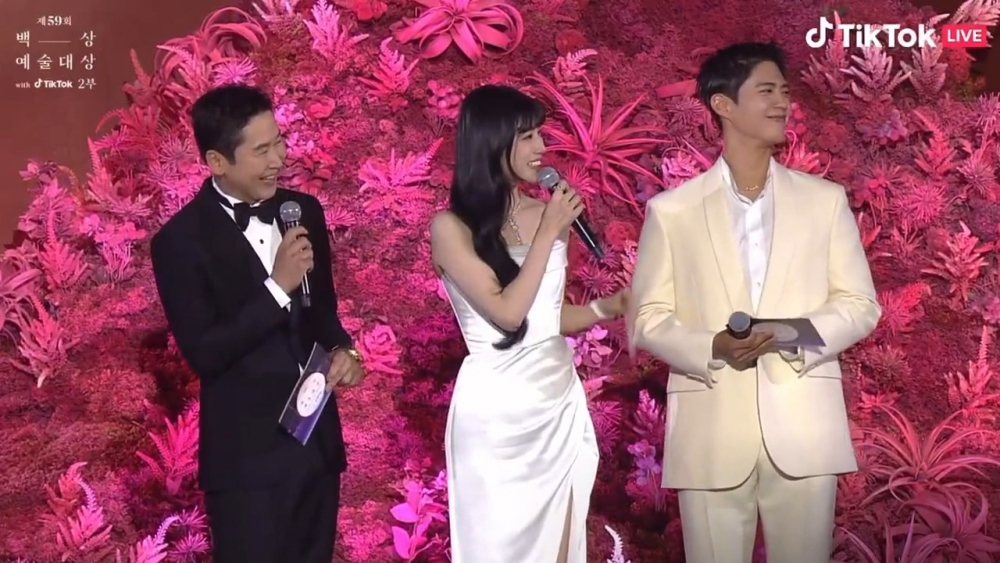 韓國一年一度極具指標性的盛事《第59屆百想藝術大賞》已在4月28日圓滿落幕~而這屆的頒獎典禮也重新聚齊了許多當初觀眾粉絲嗑得為之瘋狂的CP,像是「初戀CP」李帝勳與秀智、「具美CP」孫錫久與金智媛等。當天李帝勳以頒獎嘉賓出席了該典禮,就在正式頒獎前,他在臺上公然地向遠在另一邊的主持人秀智互動說:「秀智xi,好久不見。」,而有些驚訝的秀智也立馬笑著回應揮揮小手說:「哦?歐巴,過得好嗎~?」在一旁姨母笑的朴寳劍正正代表了廣大粉絲的表情XD (影片點這裏看~)