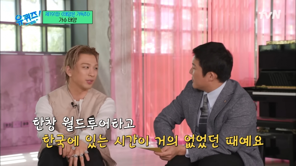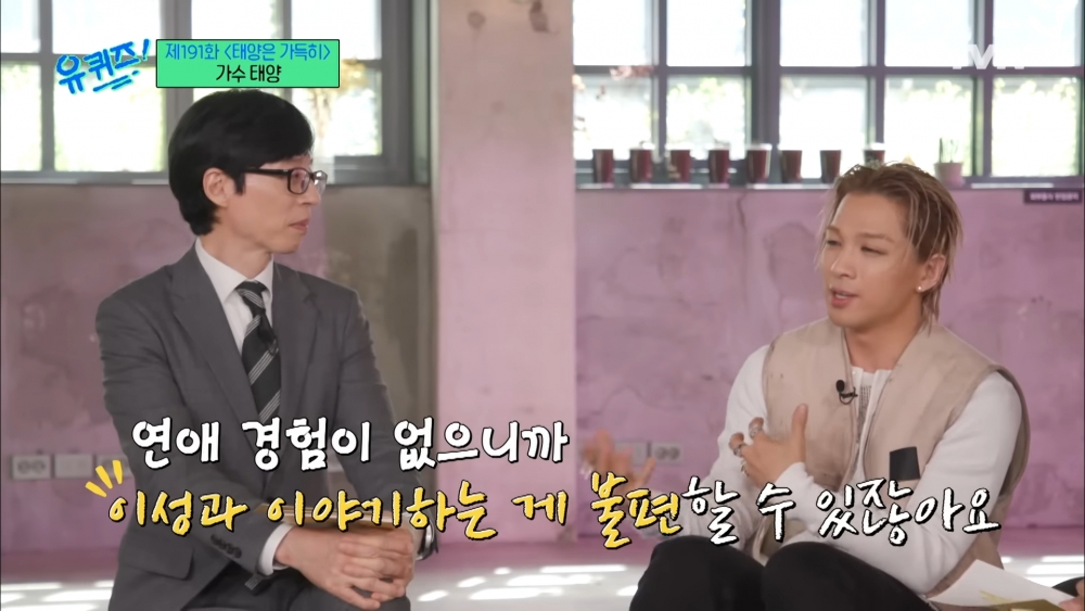 這時,曹世鎬發出疑問說:「嗯?這樣聽起來挺好的,怎樣會...突然分手?」太陽則回答因為當時忙著參與世界巡演,幾乎沒有時間待在韓國加上自己實在沒啥戀愛經驗不知道應該要怎麽去聯絡,現在仔細想當時(閔孝琳)應該很鬱悶吧(笑)