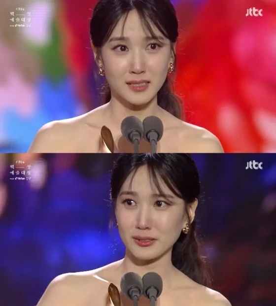 在《非常律師禹英禑》中細膩演繹自閉症律師「禹英禑」的朴恩斌,這次在《第59屆百想藝術大賞》中拿下了TV部門的大賞,聽到自己名字的她一開始不敢置信地摀嘴,之後上台發表得獎感言的時候還哭了出來:「今天,我實現了我的夢想。」
