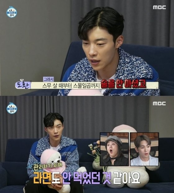接著,禹棹奐表示自己嚴格管理身材已經長達10年多:「從無名時期開始,為了抓住不知道什麼時候會有的試鏡機會,從20歲到27歲期間沒喝過喝酒,也沒什麼吃泡麵,好像有10年沒吃過拉麵了,只記得3年前在軍隊訓練時吃過一次。」