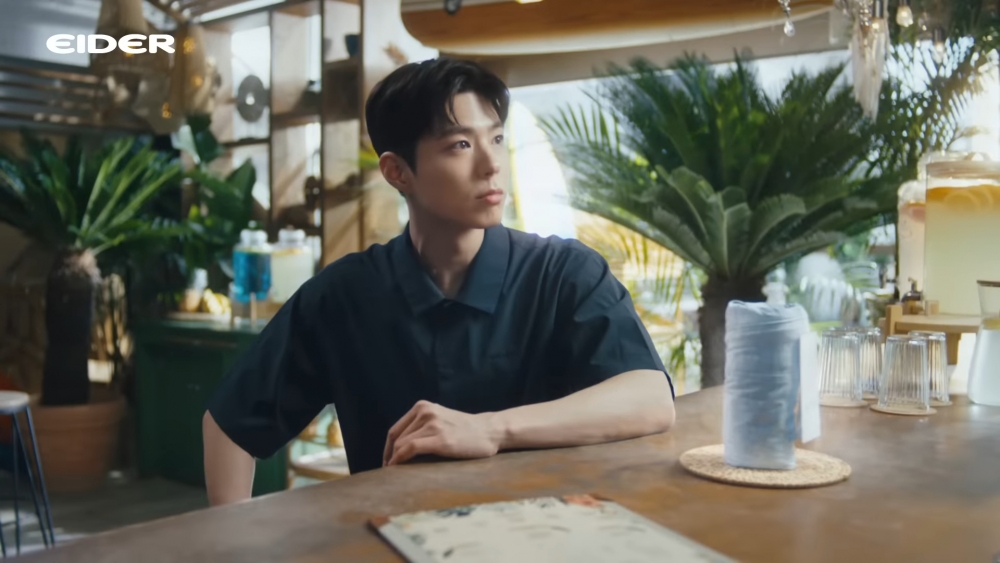 公開的廣告中,以炎熱的夏日為主題,朴寳劍到咖啡館點了一杯飲料且備注說要最冷的,而作為咖啡館員工登場的張員瑛再收到訂單後,送上了Eider夏季主推冰褲(On the Rock Ice Pants)造型的飲料給客人朴寳劍。朴寳劍一臉疑惑的看著桌上的「飲料」後兩人一秒變裝,喊了句該產品的口號就結束了XD