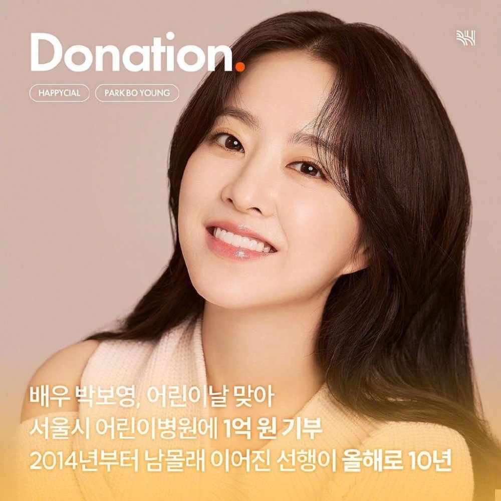 而除了李鍾碩與IU,還有多位明星也在兒童節進行捐贈善舉。朴寶英捐贈了1億韓元。通過這筆捐款,將用於改善首爾兒童醫院發展中心的藝術治療環境。朴寶英自2014年以來,就穩定向首爾兒童醫院捐贈治療儀、空調、空氣淨化器等醫療器械,以及對患者的醫療支援,累計捐贈超過2.5億韓元,持續做好事。