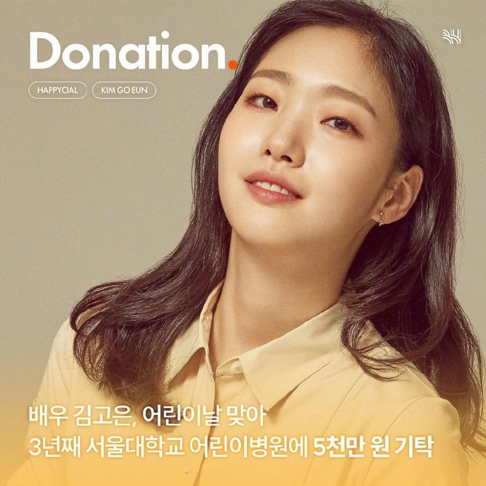 金高銀也在兒童節當天向首爾大學兒童醫院捐贈了5千萬韓元,她的捐款自2021年起持續了三年,將有意義地用於治療因慢性或嚴重疾病治療而遇到經濟困難的低收入家庭兒童。金高銀也通過經紀公司表示:「聽說這對每年都需要幫助的患兒們來說是很珍貴的,所以非常感動。」