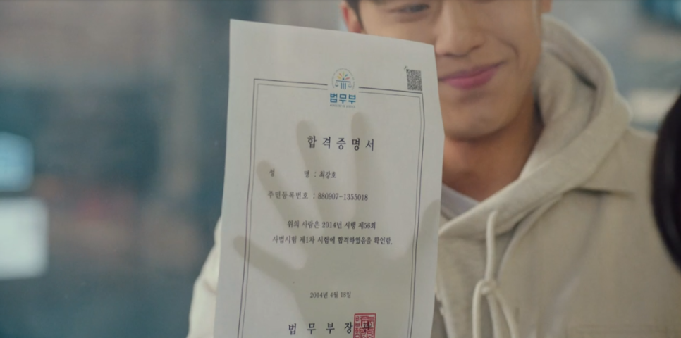 另外,美珠(安恩真 飾)被朋友捲走財產面臨財務危機,她在一家海產店喝酒想起了過去與強豪一起的那段時光。當時看到邊打工邊準備司法考試的強豪,美珠決定投資他,於是獨自扛下兩個人的生活費,而豪強也不讓她失望,一次次順利地通過考試。